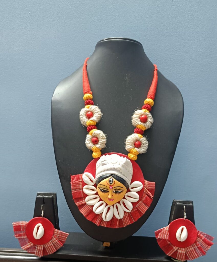Durga Puja Jewellery Set for Women | Durga maa handmade Necklace and earring set for Navaratri/Durga puja