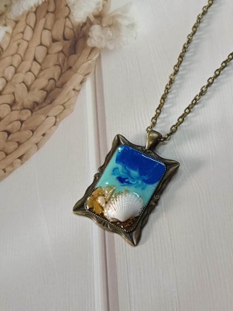 Ocean pendant, Seashell pendant, Pendant set,ocean lovers pendant | resin ocean pendant | boho ocean pendant