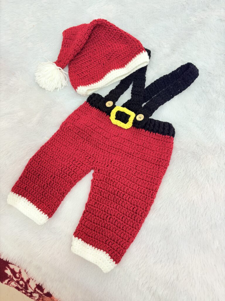 Crochet baby Christmas beanie and romper set