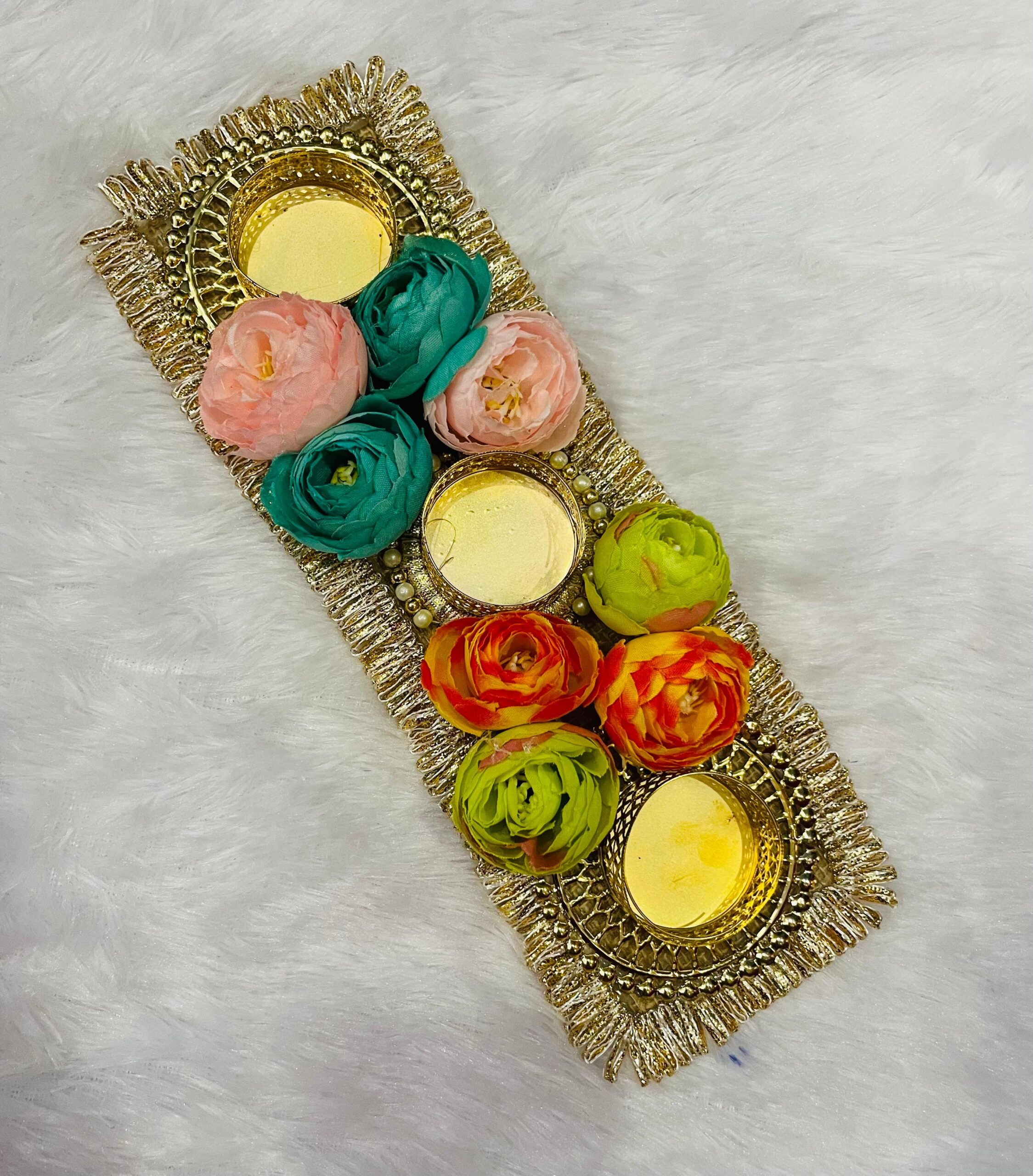 Flower Tea Light Holder, Decorative Candle Holder, Festive Home Decor, Diwali Decoration, Handmade Tea Light Stand, Pooja Decor, Affordable Home Decor, flower table runner, table runner.