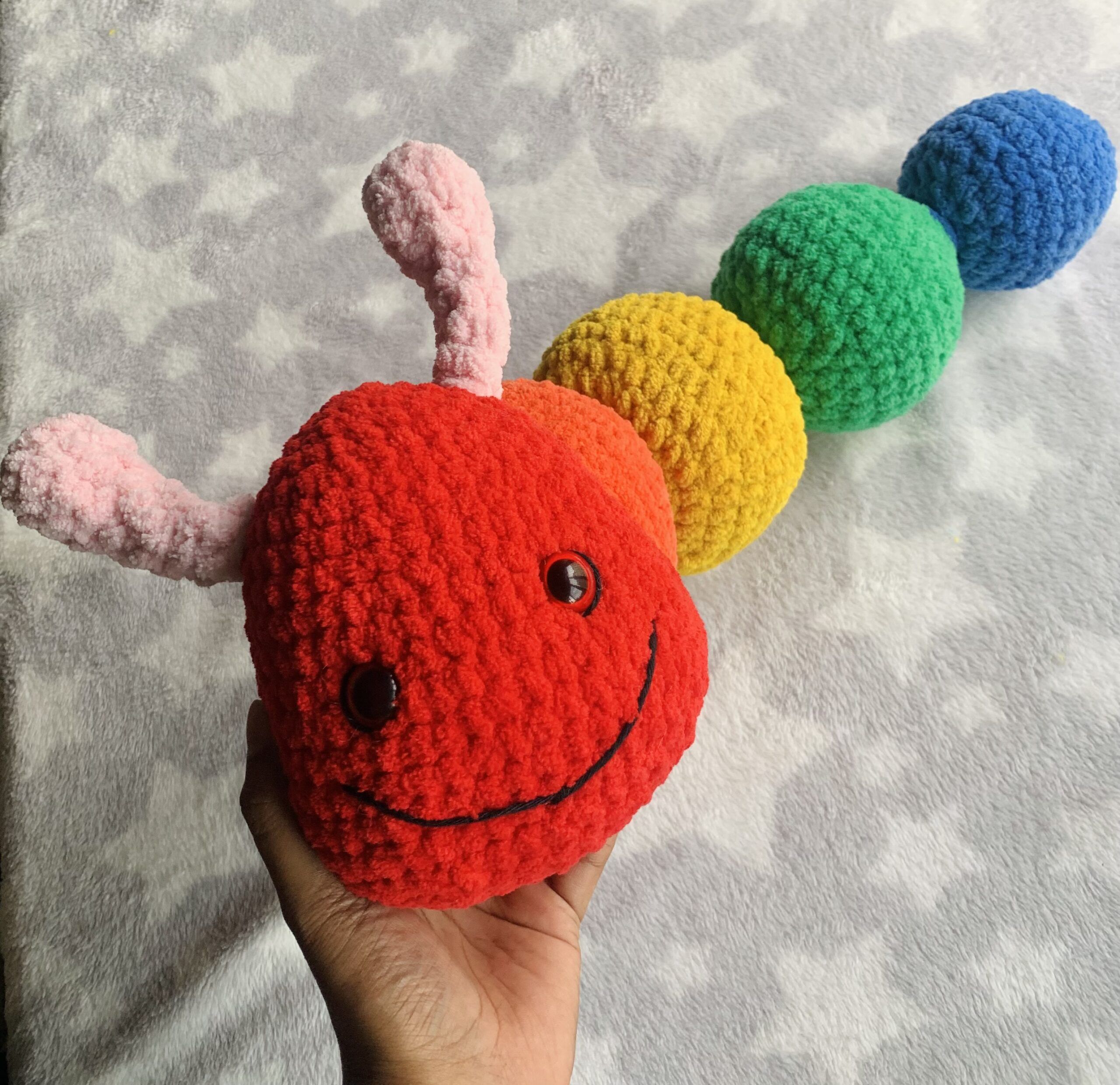 handmade Crochet Caterpillar plush – Adorable and Huggable Creations -perfect nursery room, baby cot decor or car decor – new born baby gifts – sensory toy