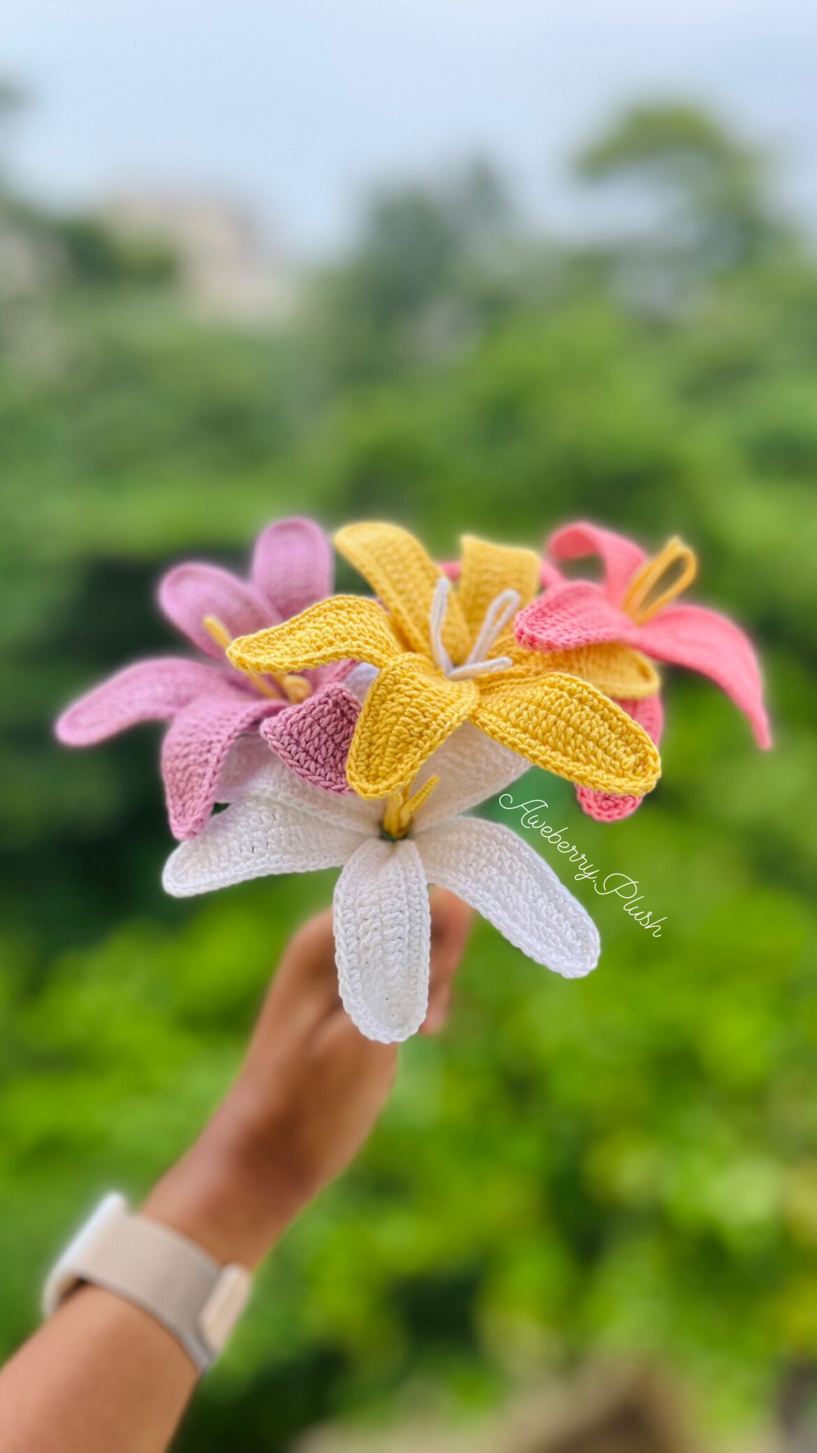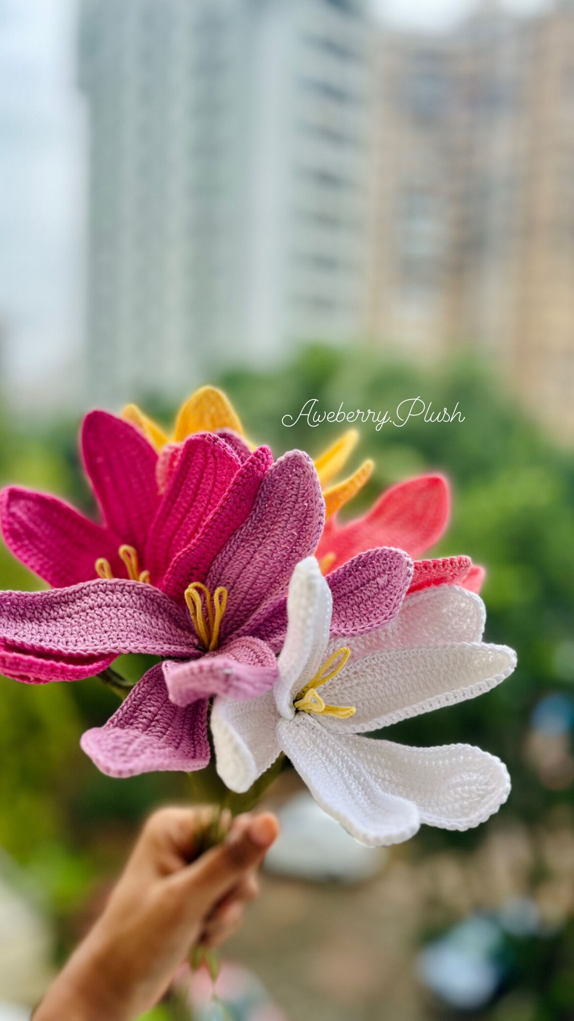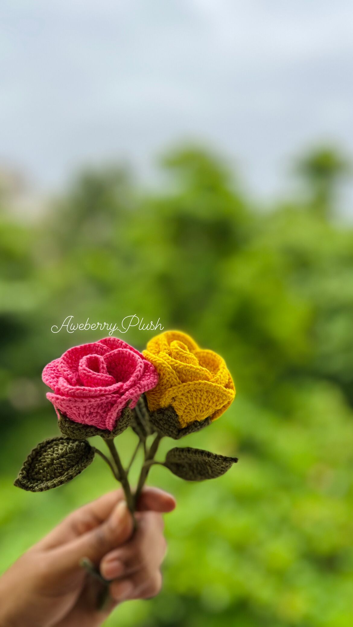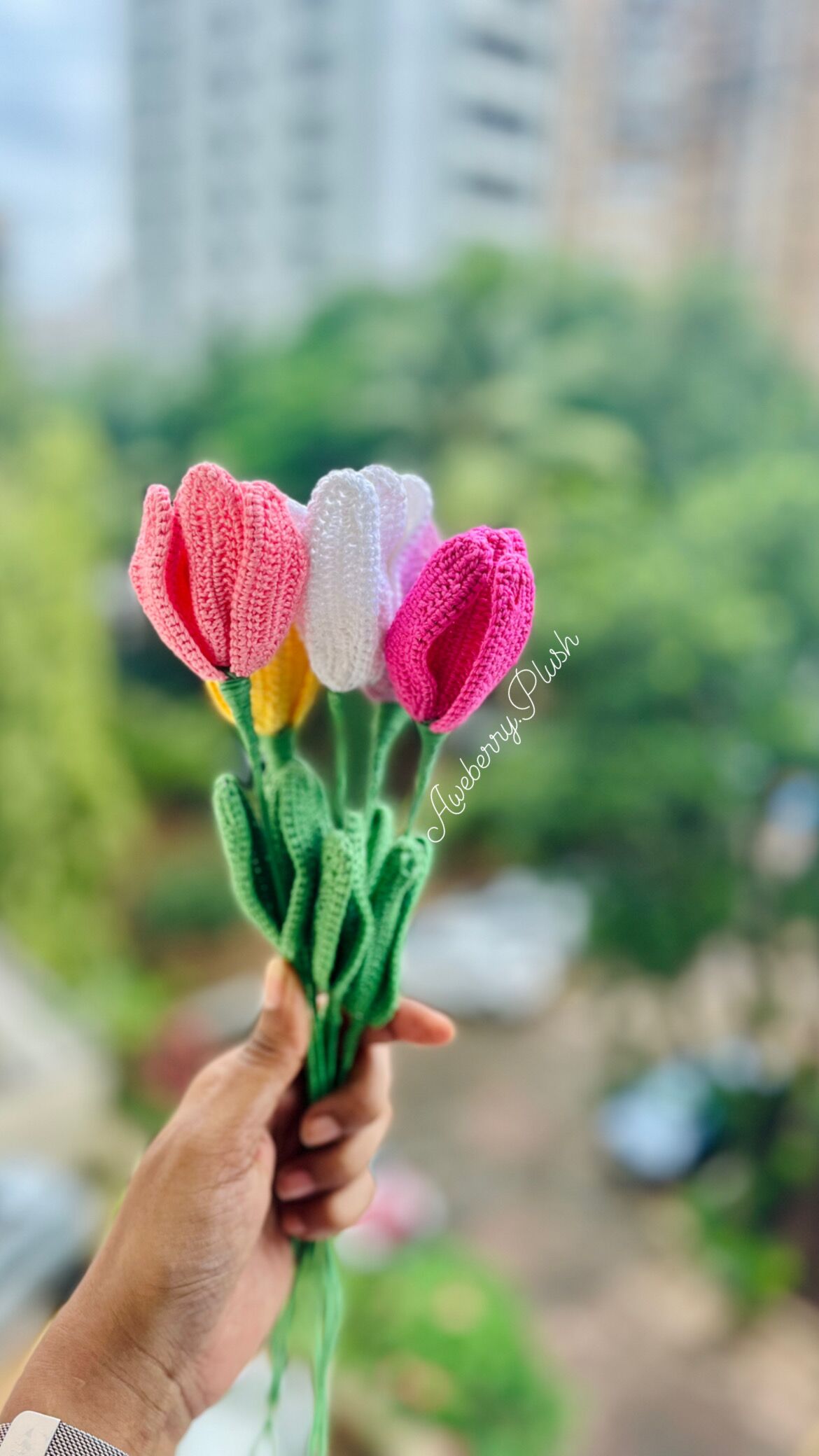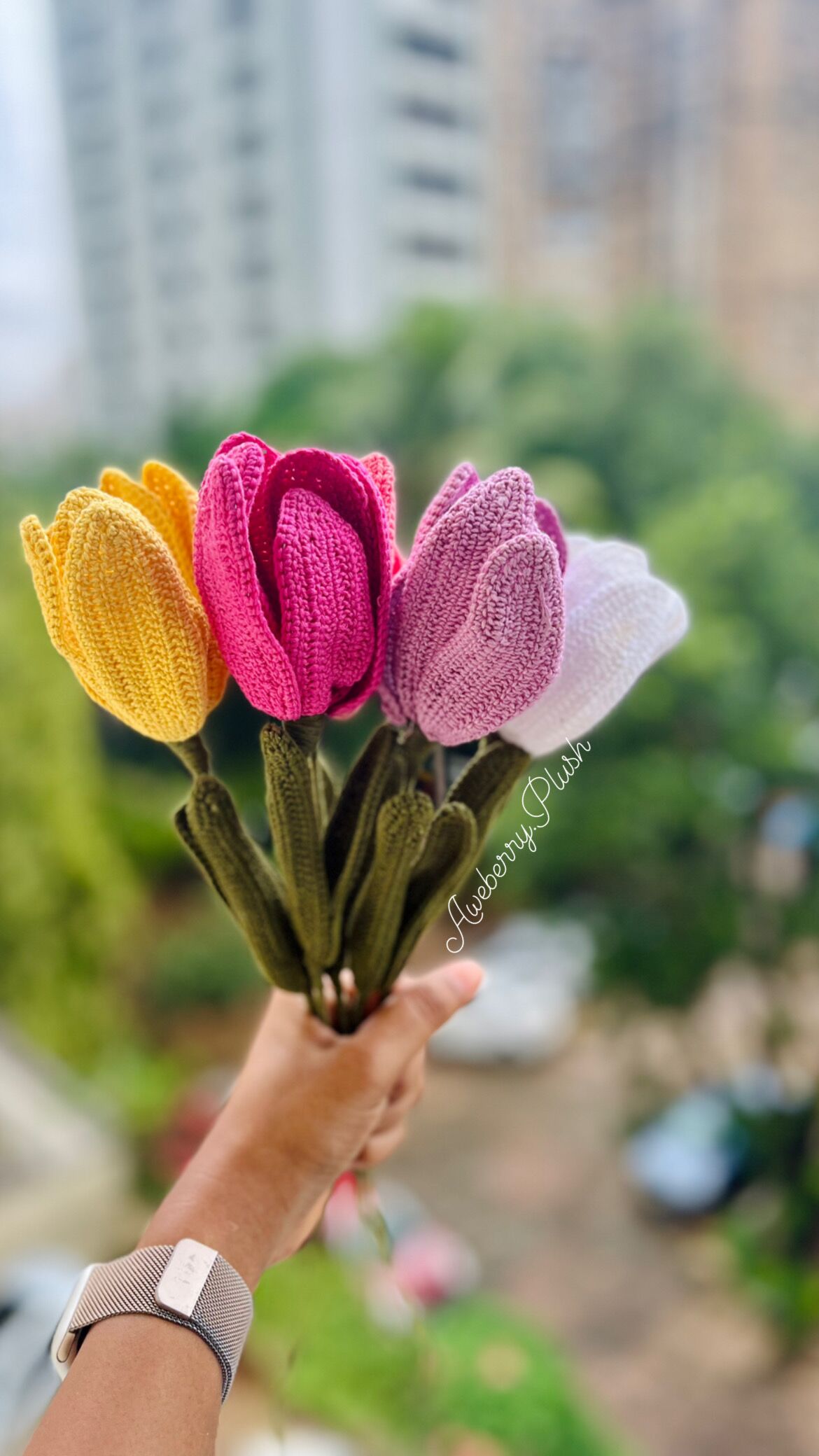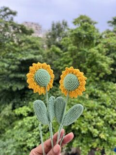 Handmade Crochet forever flowers – forever yours ! Customise your own bouquet with different varieties of flowers like chamomile, rose, rose buds, tulips , tulip buds, sunflowers, lily, lavender sticks, green stem sticks and more