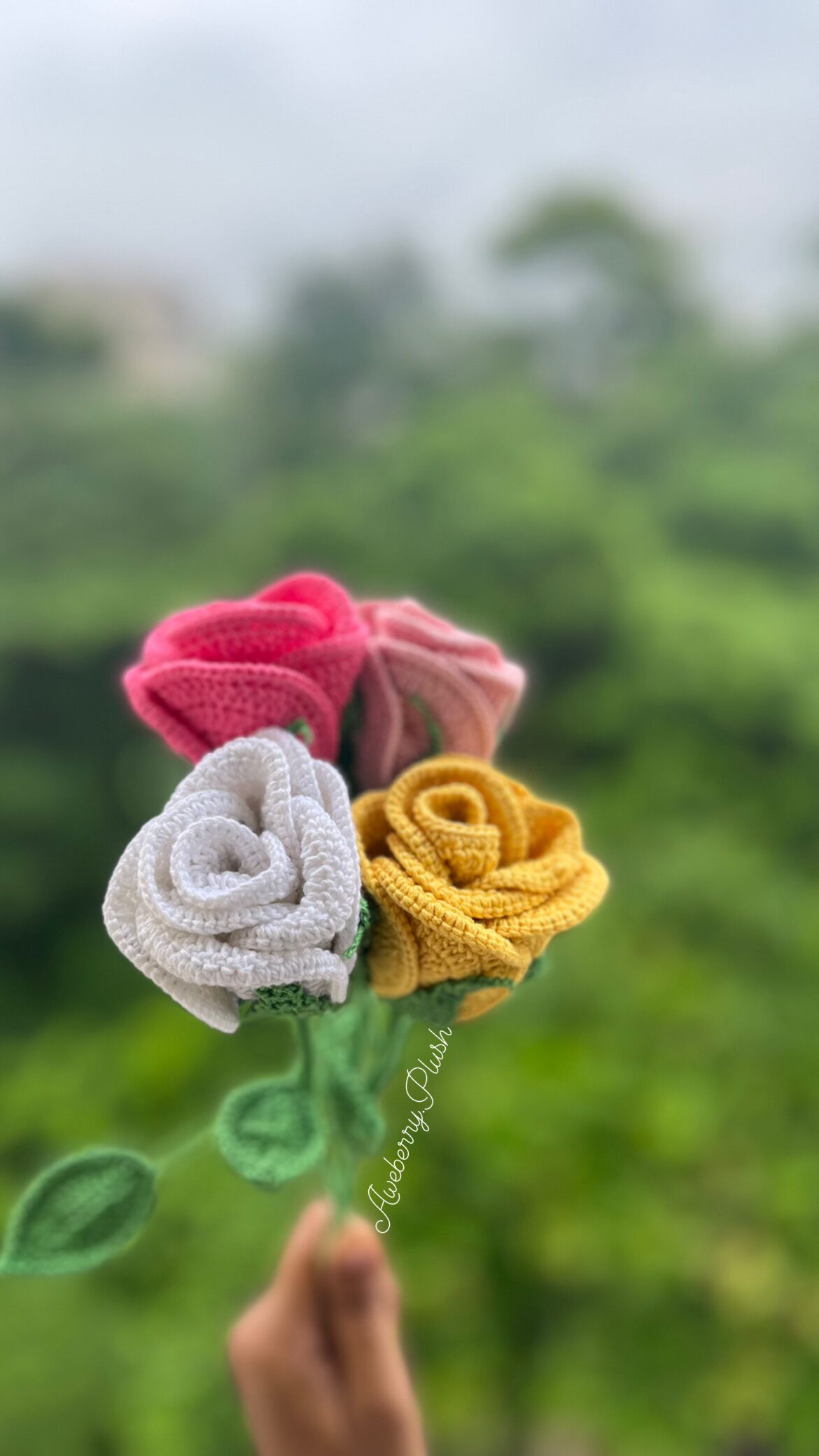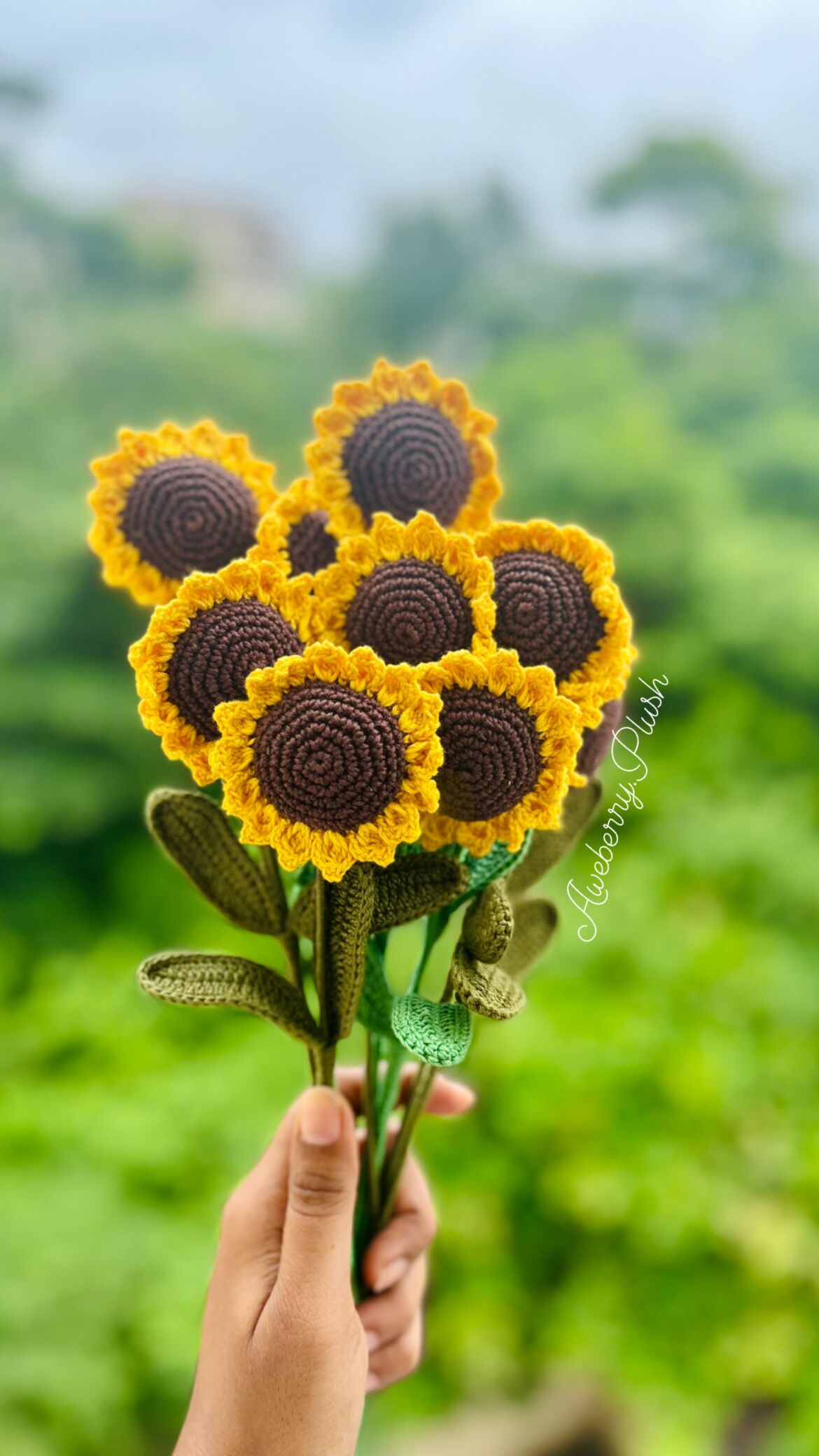 Forever Flowers | Crochet Handmade Flowers | Flower Bouquet – Unique floral decor for your home | Buds | Rose | Chamomile | Tulips | Sunflowers | Lily | Lavender | Stem sticks | India
