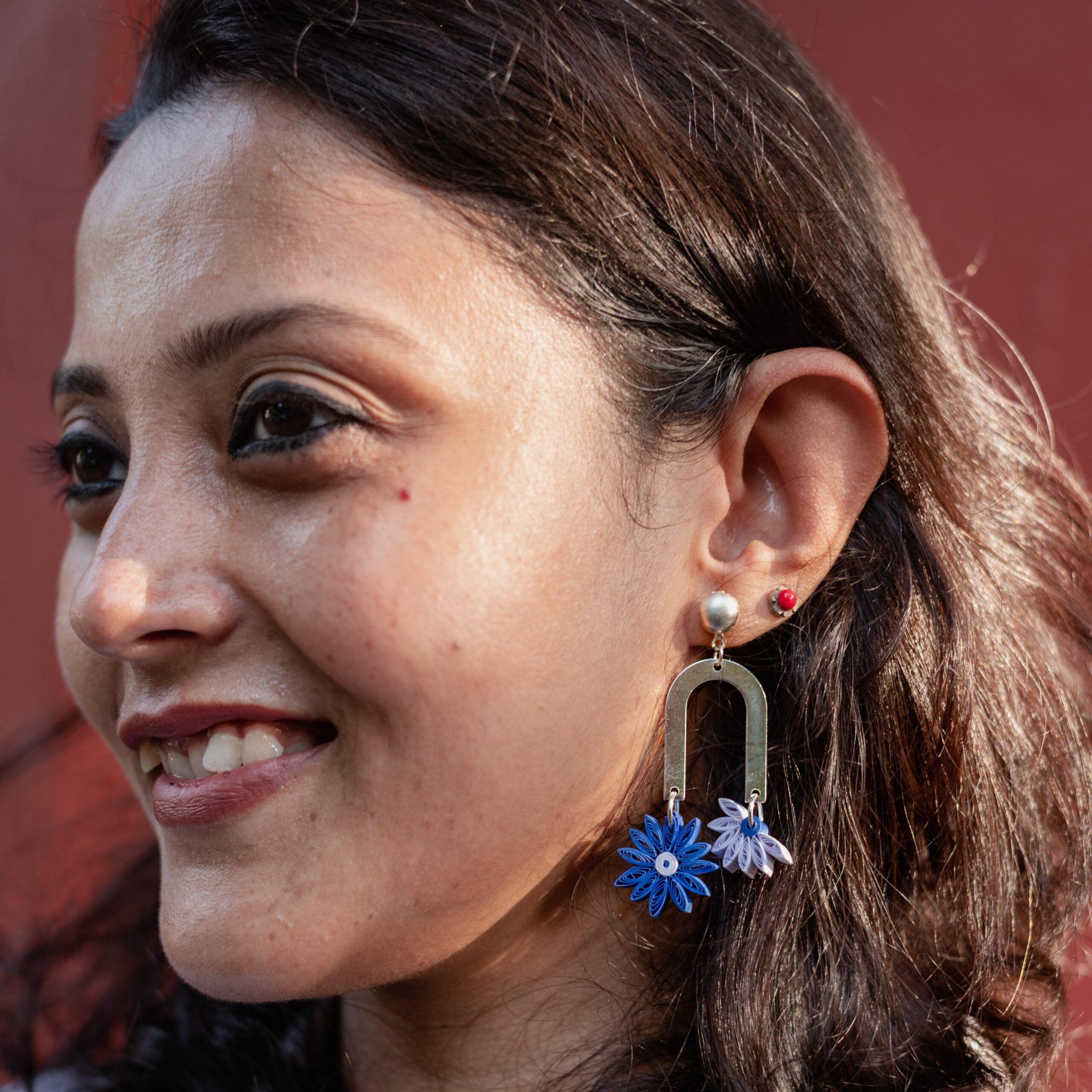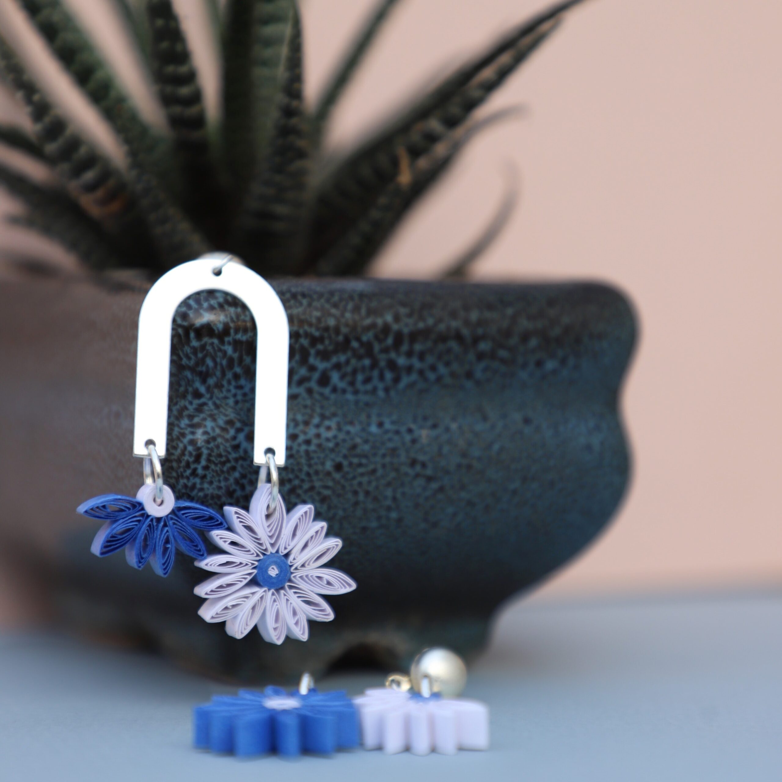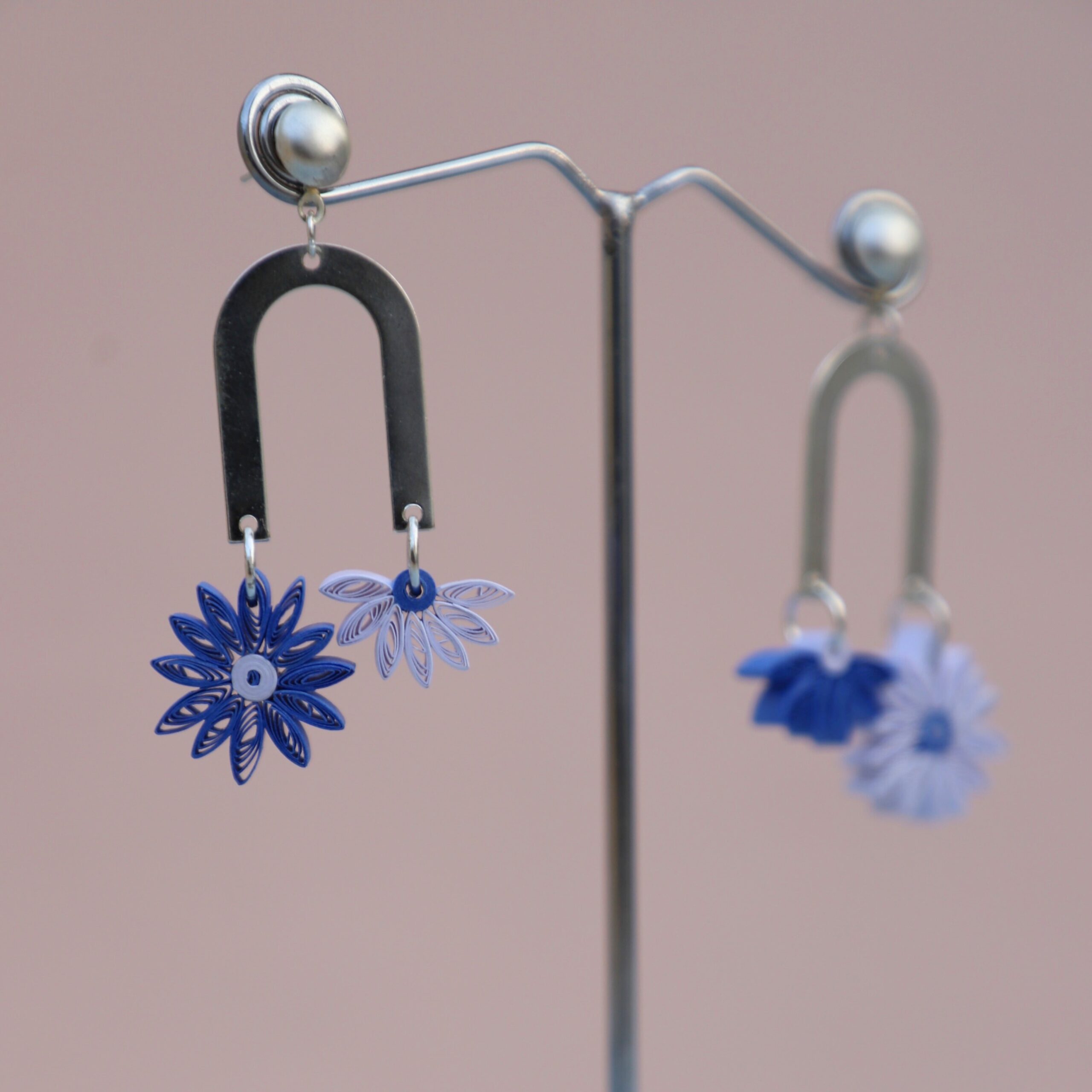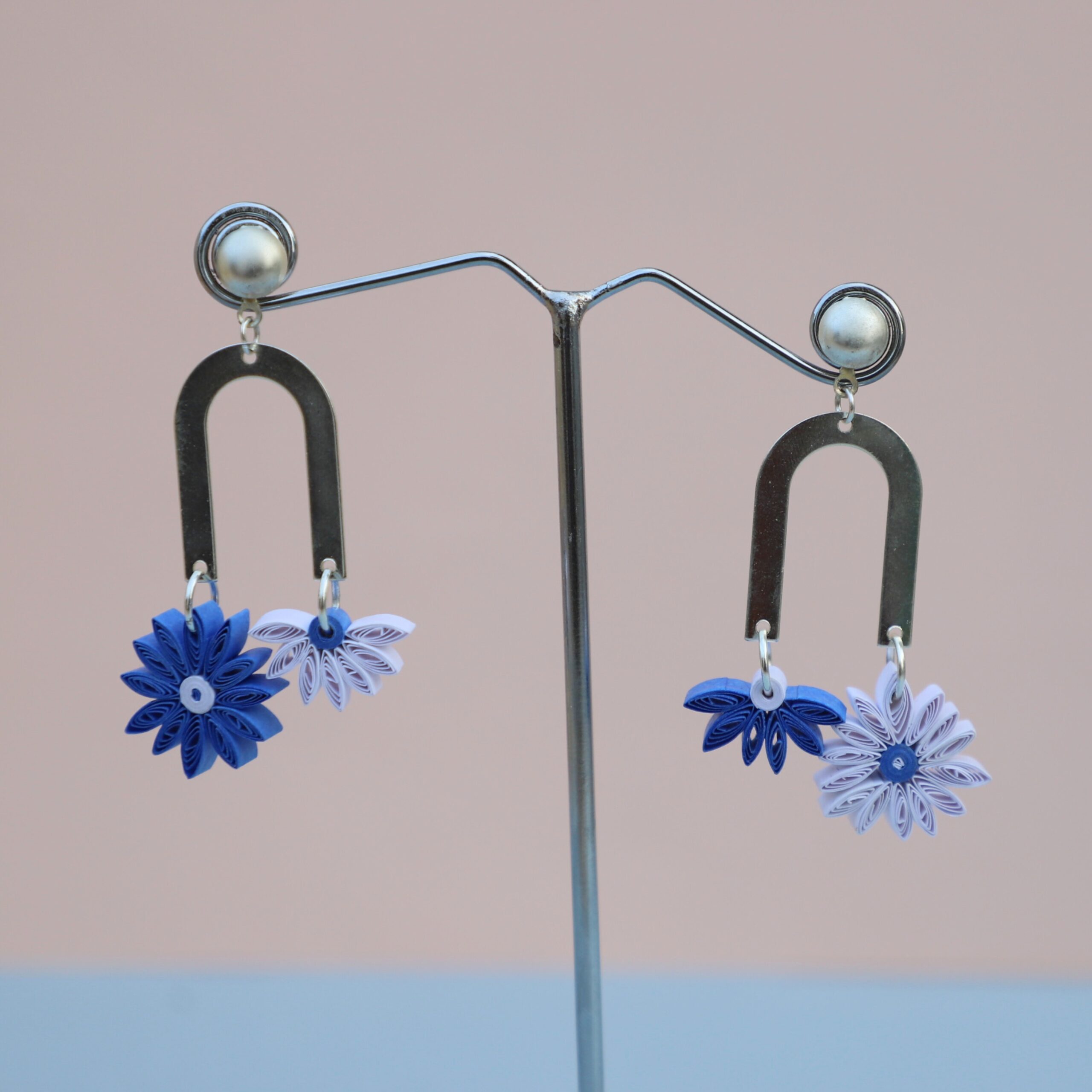 Aster Floral Hues| Paper Flower Earrings| Unique & Trendy| Anniversary Gifts| Mismatched| Gifts for Her| Handmade Gifts| Friends| Blue & White| Elegant Jewellery| Dainty Silver Dangles| Quilling Jewelry|