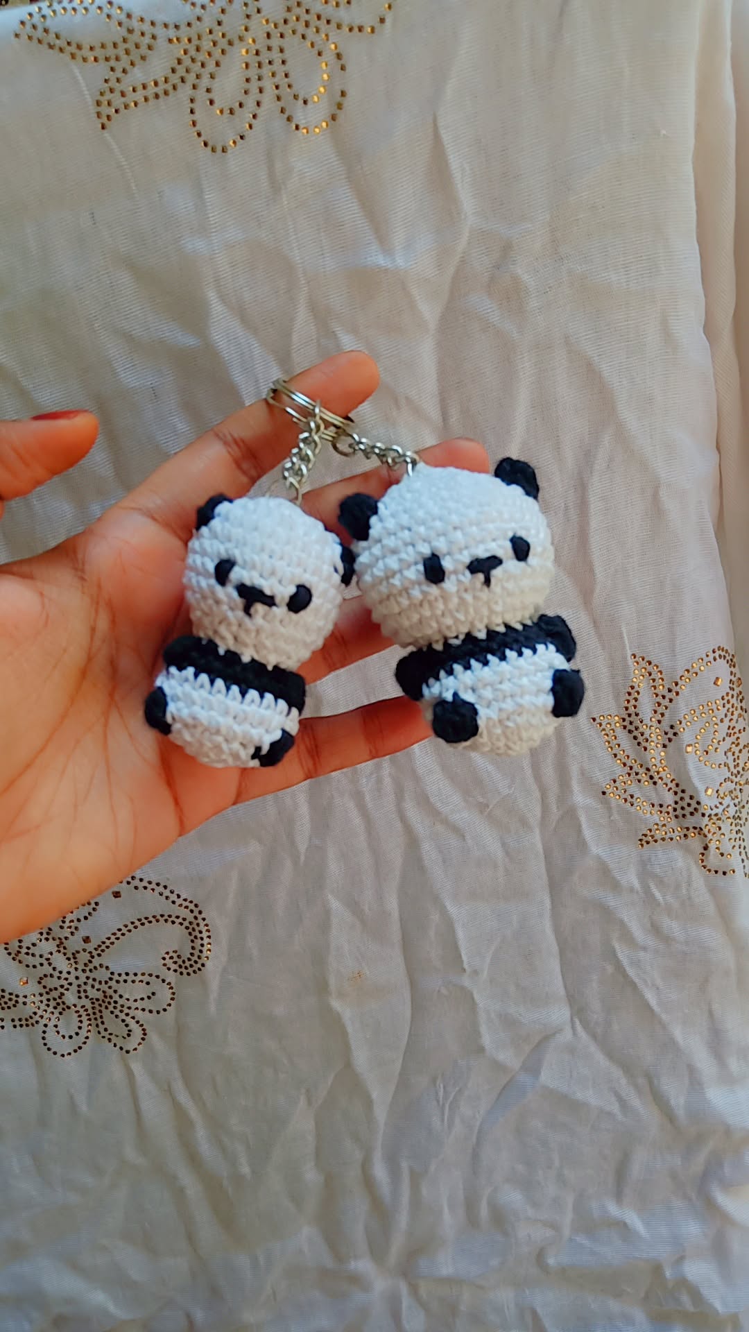 “Adorable handmade crochet panda keychain, crafted with soft yarn—perfect for bags, keys, or gifting a little cuteness on the go!”