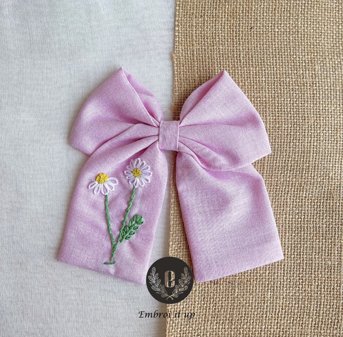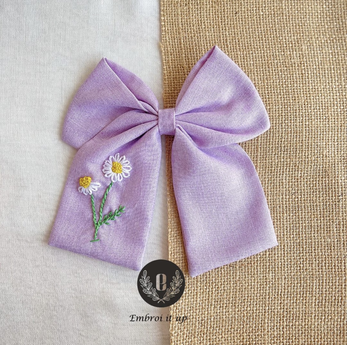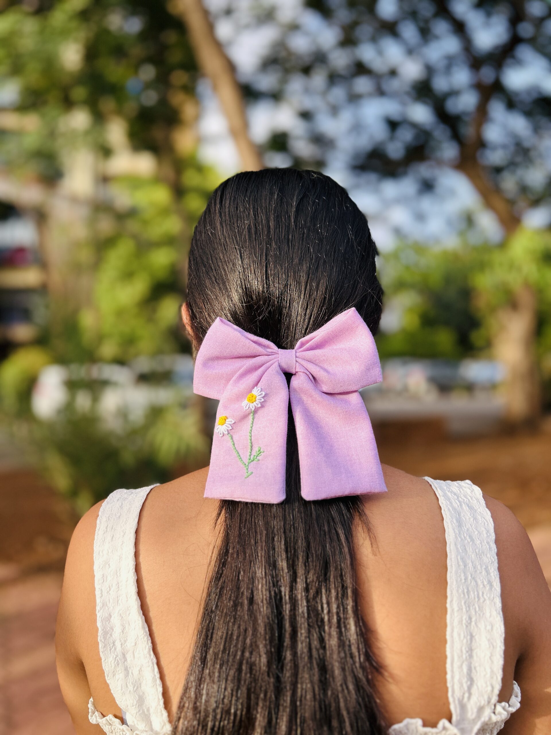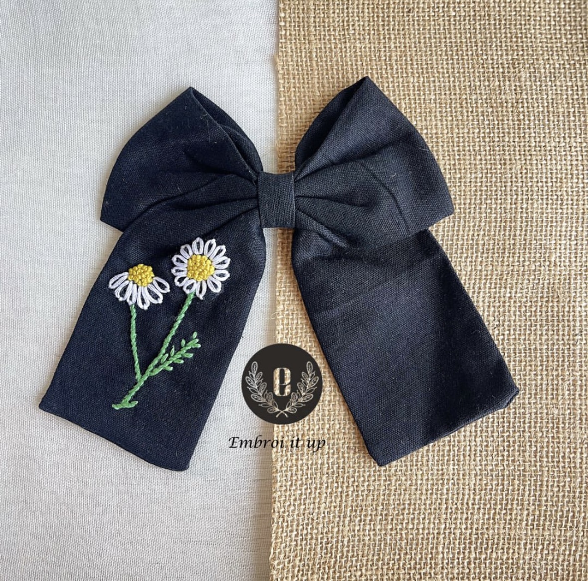 White Daisy Sailor Bow | Hair Bows for Women | Cotton Linen Hair Bow