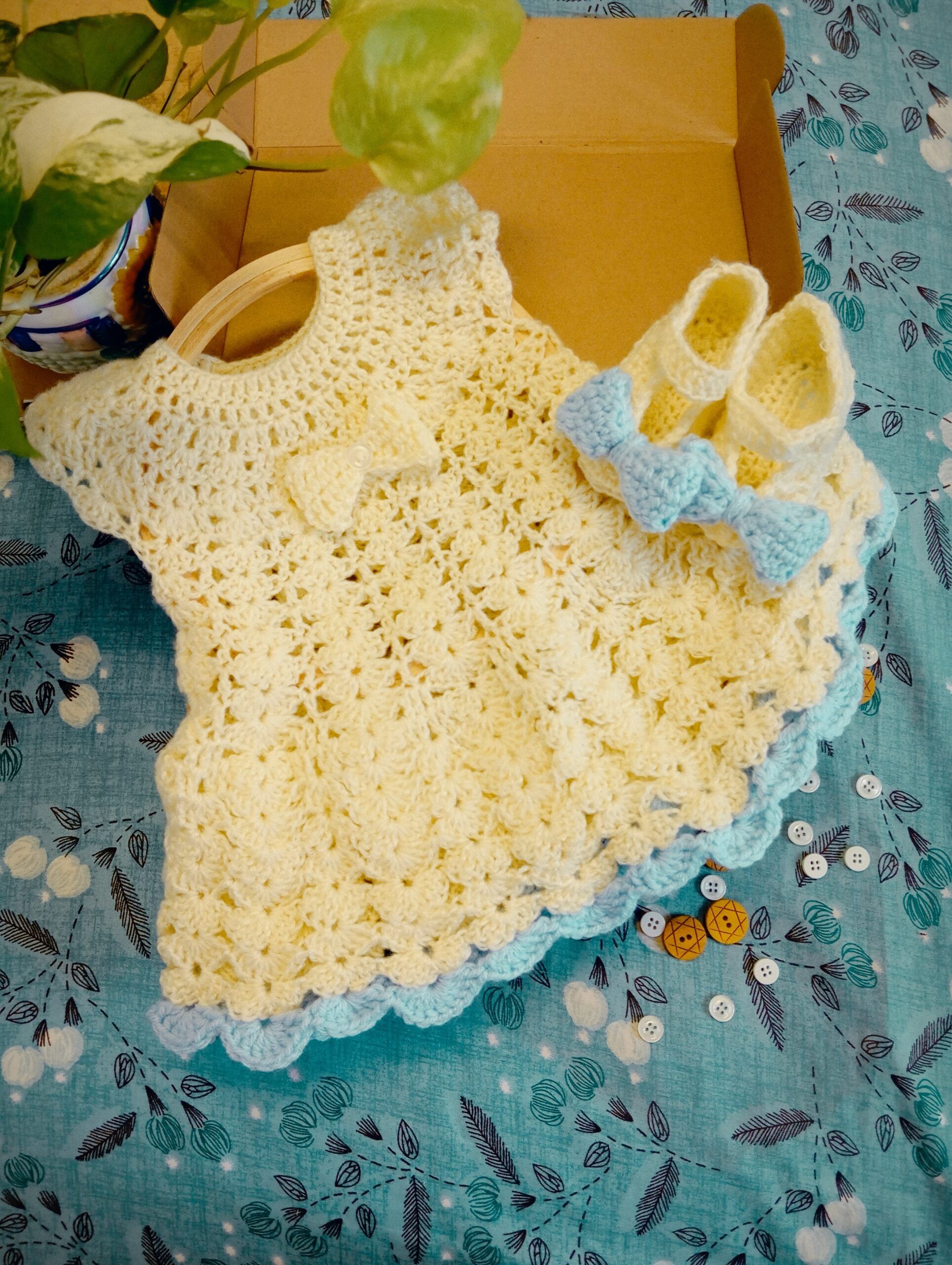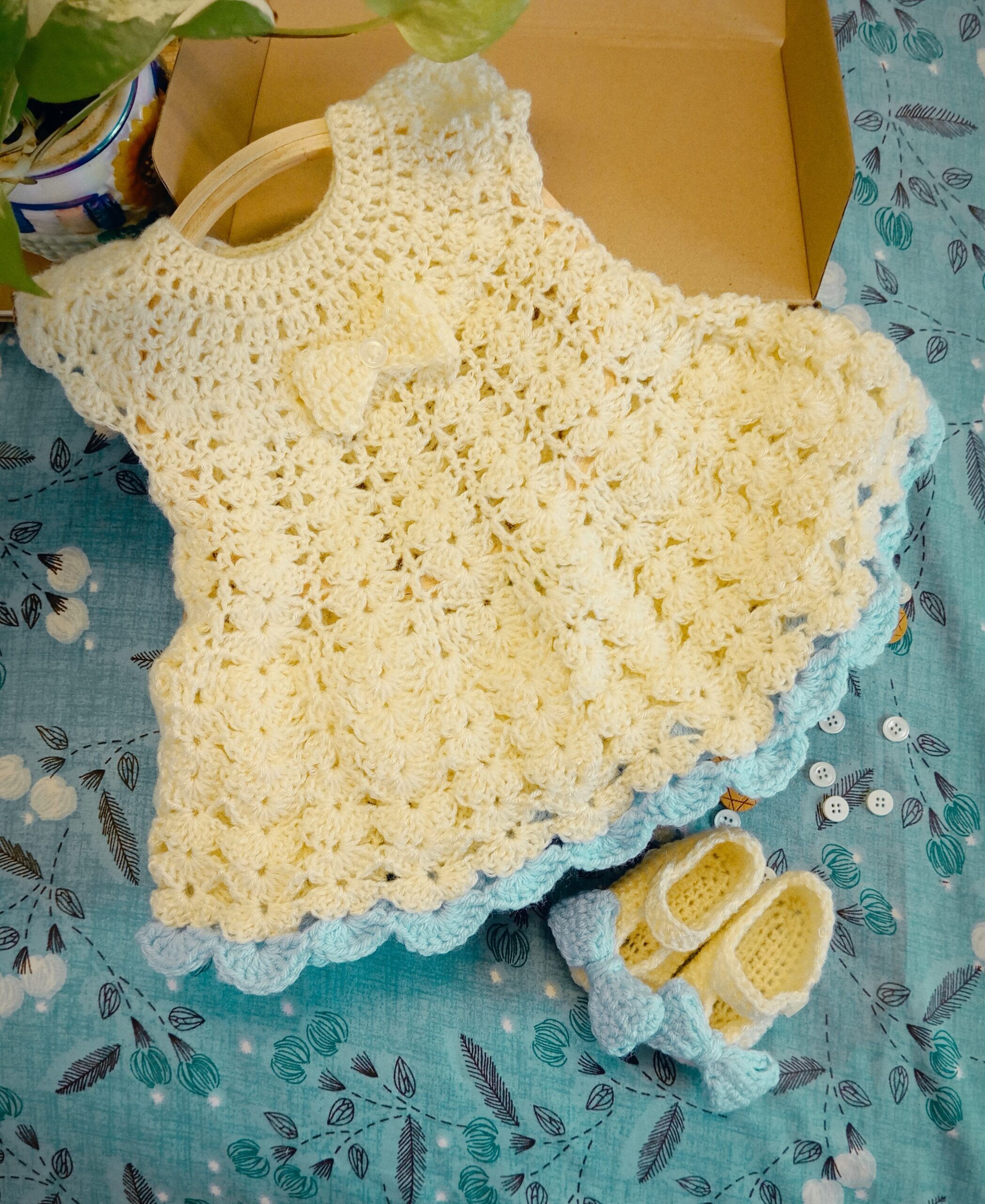Baby steps|Crocheted baby dress and booties (0-6months)|Baby girl dress and booties set| Baby girl gift set|New born baby girl set
