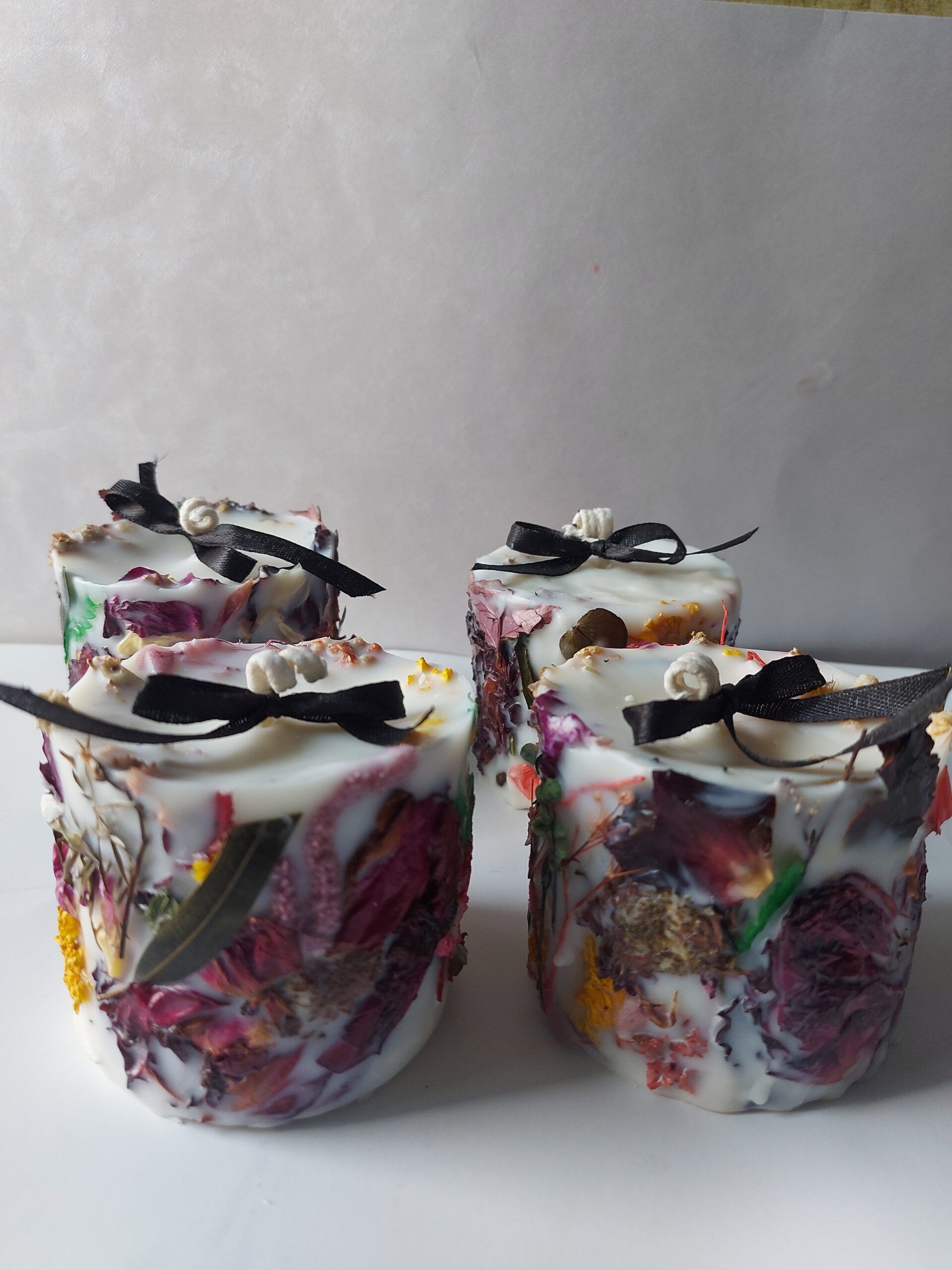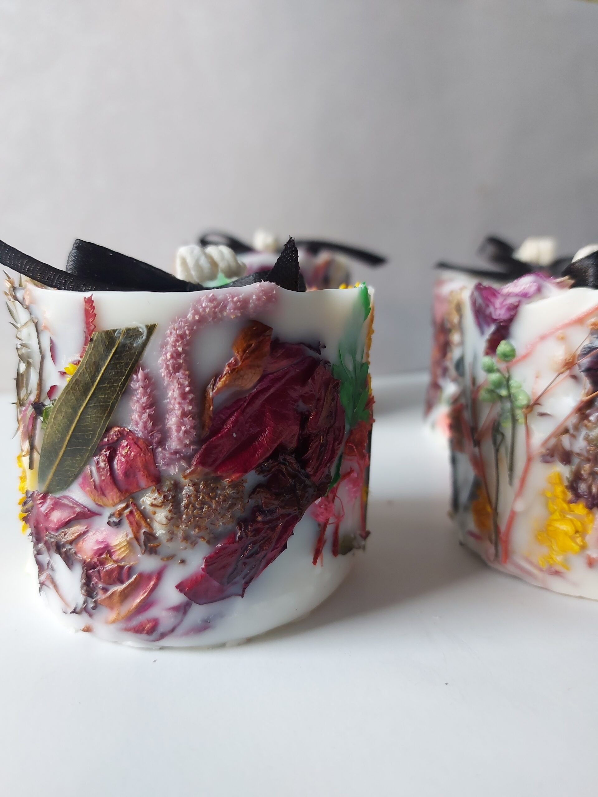 These Handmade Botanical candles are made with soy wax and flower fragrance oil with real botanicals.