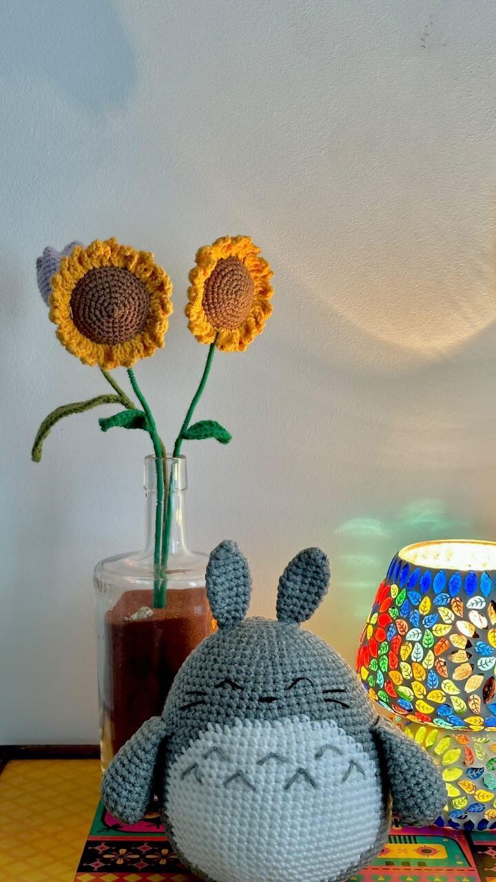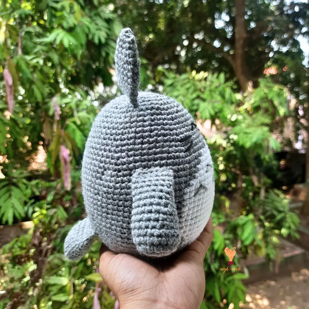 The plushie is crocheted with 8ply acrylic yarn and has a height of 20 cm (ears included). It is a great idea for a cute desk buddy or as a squishy toy for the little ones and the child in all of us!