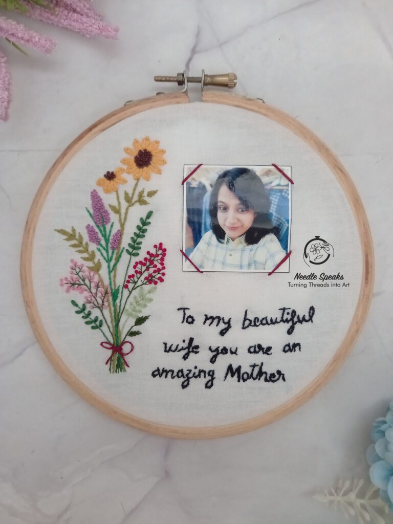 Journey from “I Do” to Parenthood, is beautifully hand embroidered, capturing precious moment of Love.