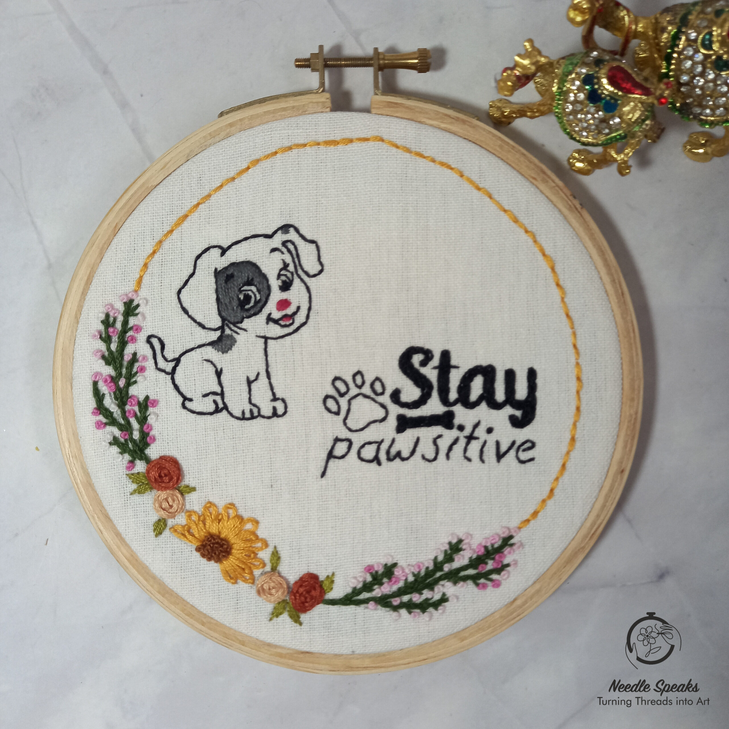 Pet Lover – Welcome home – hand embroidered/ hand embroidery/ wall decor/ wall frame/ personalized/ customized/ Floral wreath