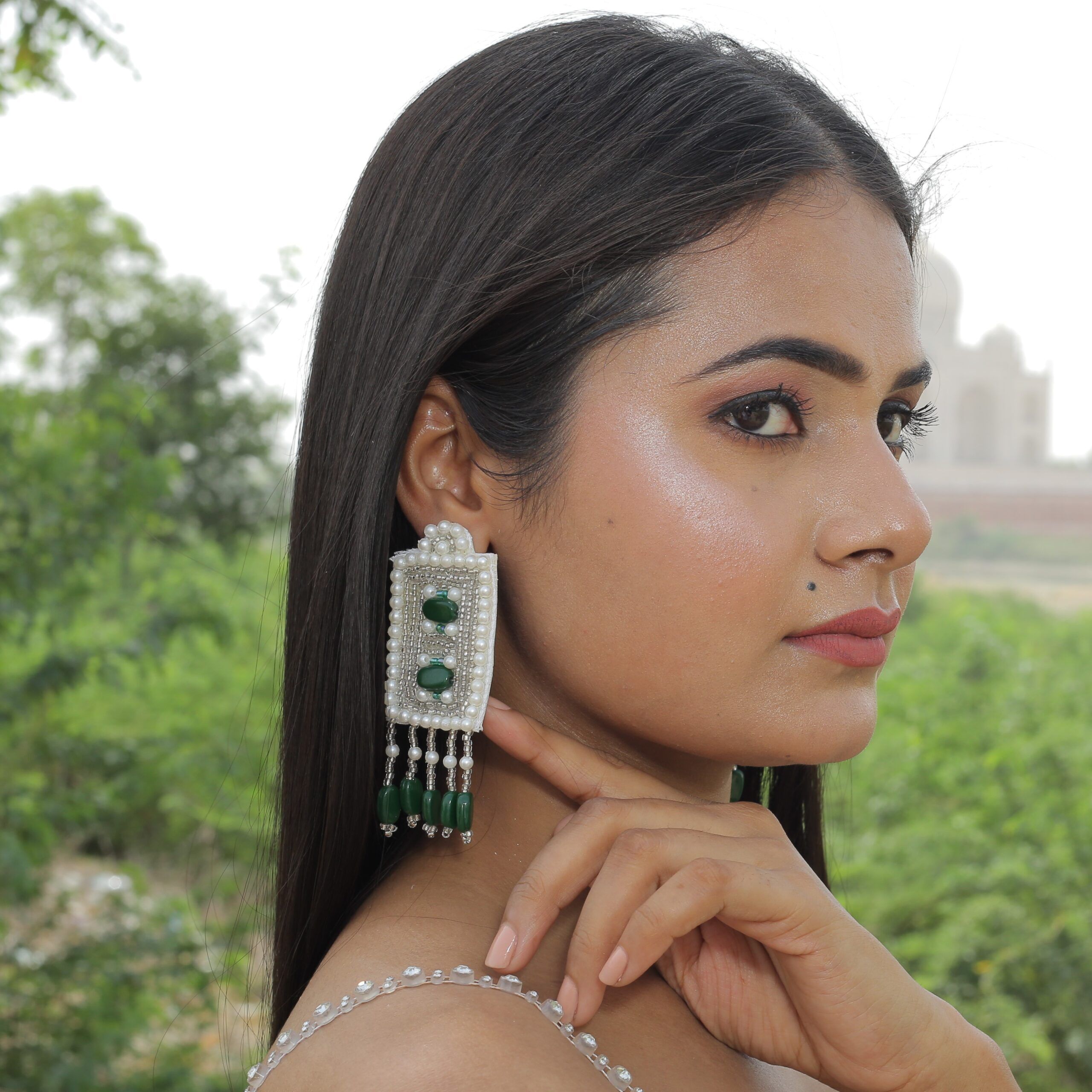 PGYG Green And White Handmade Designer Earring For Women And Girls E014