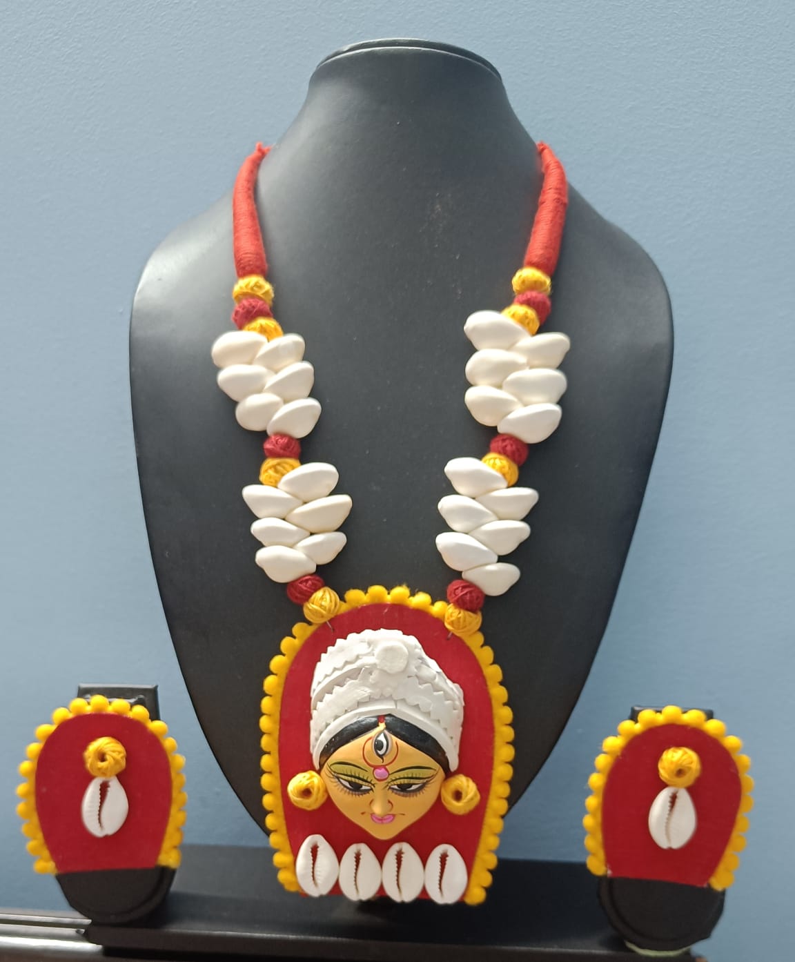 Durga Puja Jewellery Set for Women | Durga maa handmade Necklace and earring set for Navaratri/Durga puja