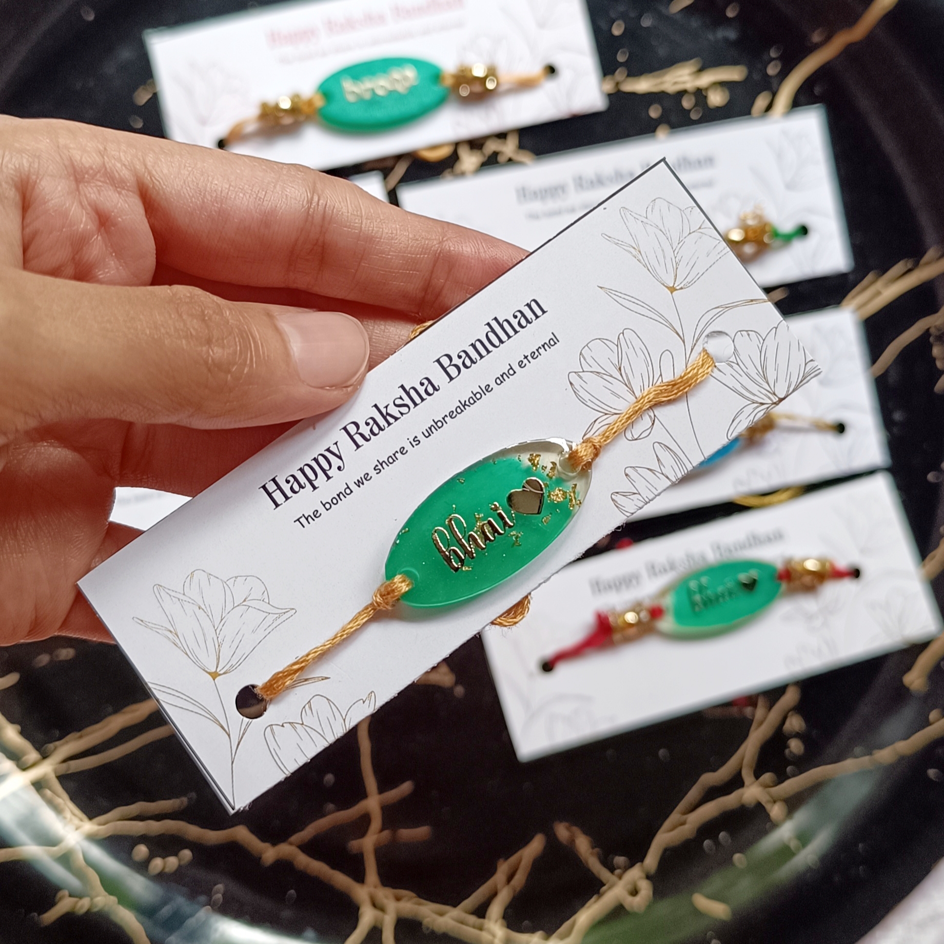 Looking for a special way to celebrate Raksha Bandhan? Consider a resin rakhi! These beautiful pieces can be customized with unique colors, designs, and even personalized messages. Made from high-quality resin, they are durable and can be worn for years to come. Whether you prefer a minimalist look or something bold and eye-catching, there’s a resin rakhi out there for you. Surprise your brother with a one-of-a-kind piece that shows how much you care this Raksha Bandhan.