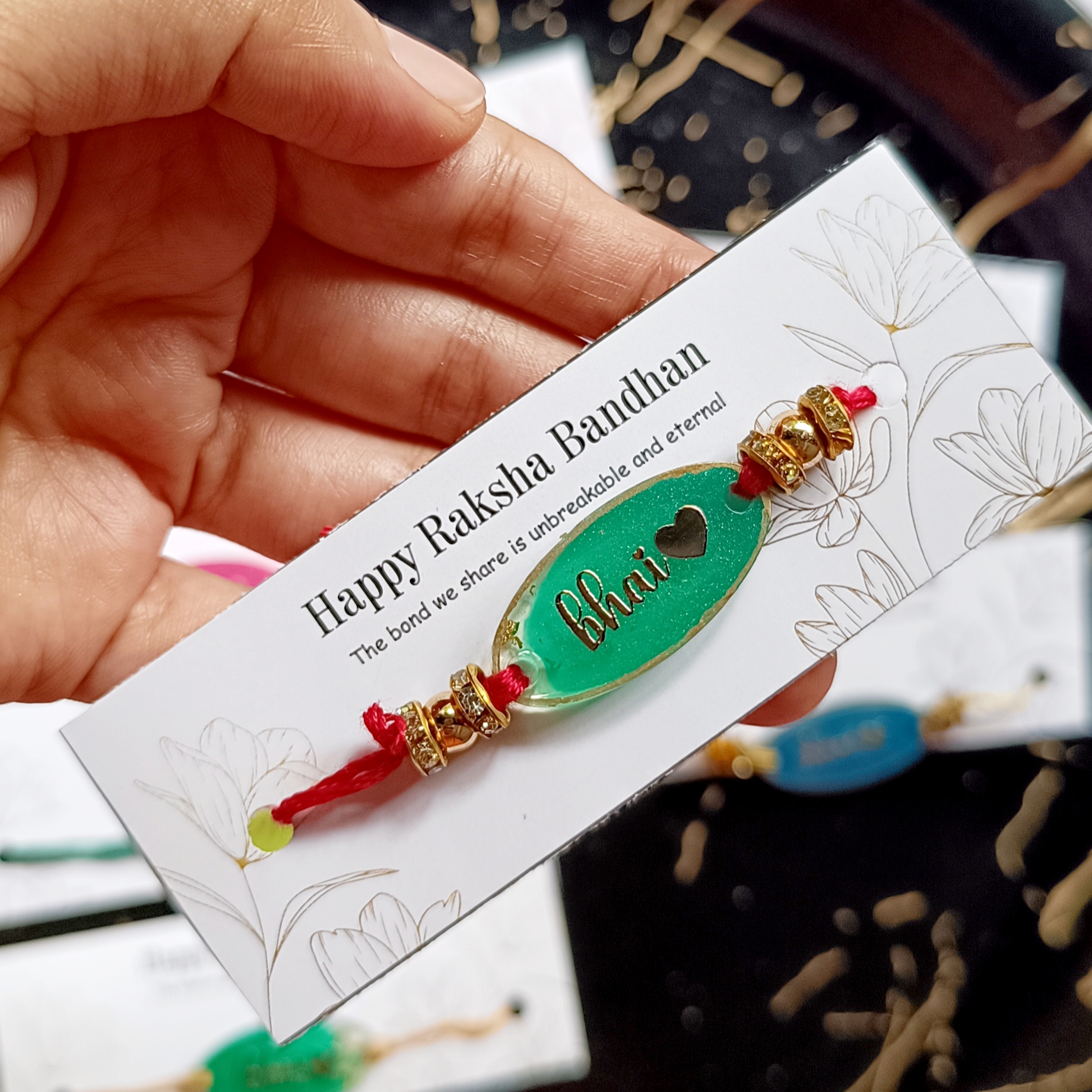 [Bhai ki Rakhi, behen ki Rakhi, Bhai Bhabhi Rakhi, Rakshabandhan Resin Rakhi, Elegant Rakhi]