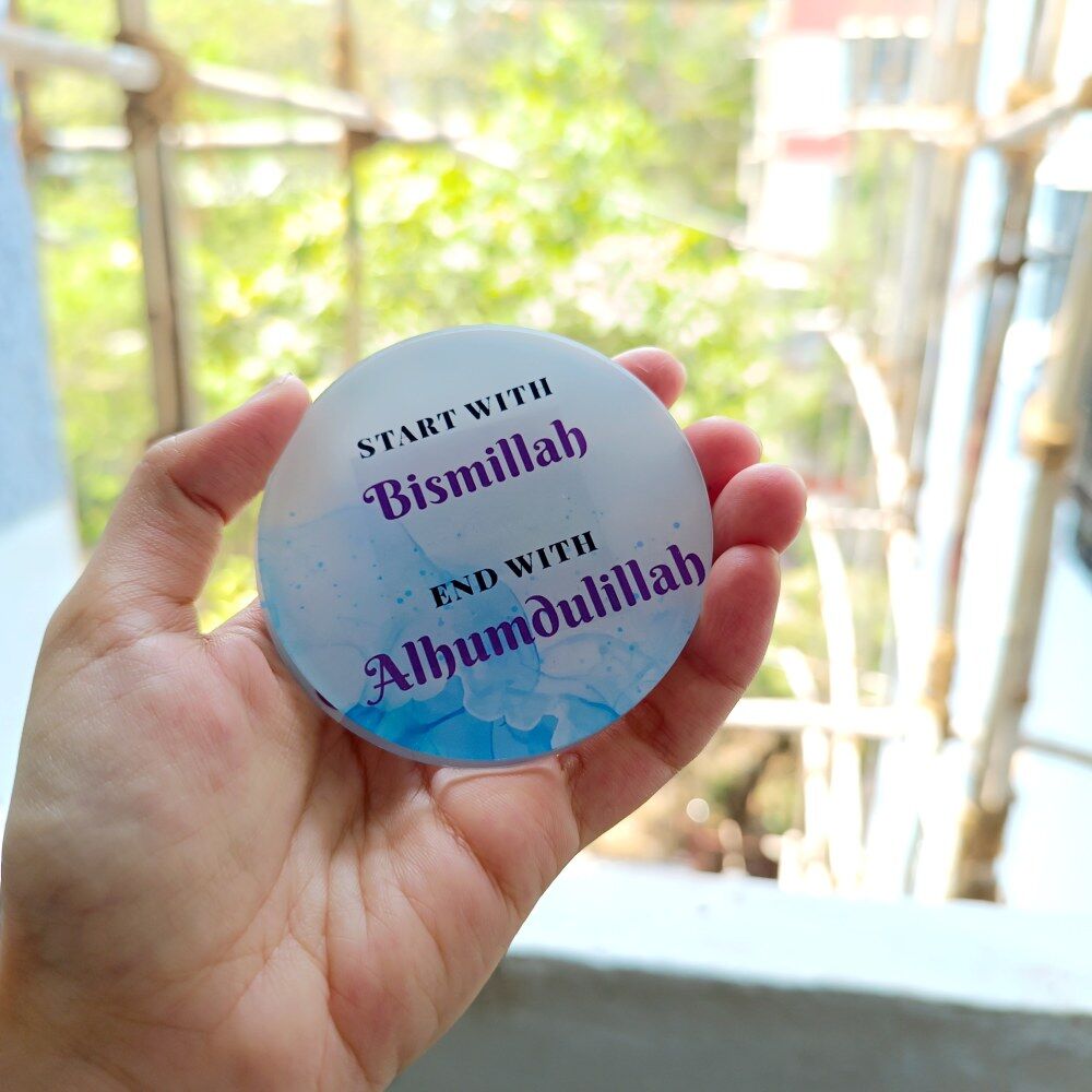 Start with Bismillah, end with Alhamdulillah” Islamic fridge magnet: Infuse your kitchen with blessings using our elegant magnet. Perfect for daily reminders of gratitude and faith, this magnet combines Islamic spirituality with practicality, making it an ideal gift or personal addition to your home decor.