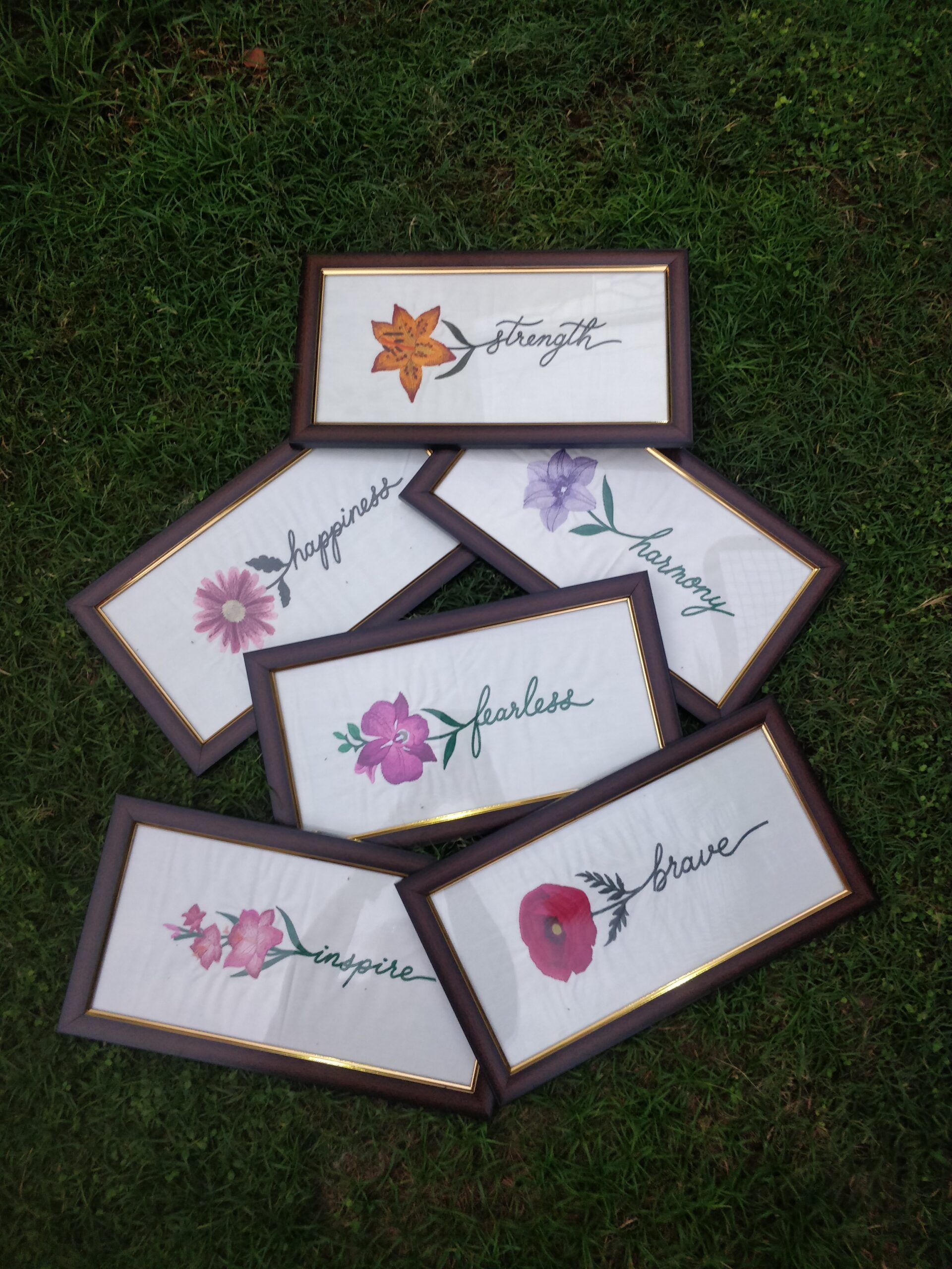 Set of 6 embroidered frames with beautiful flowers and inspirational words