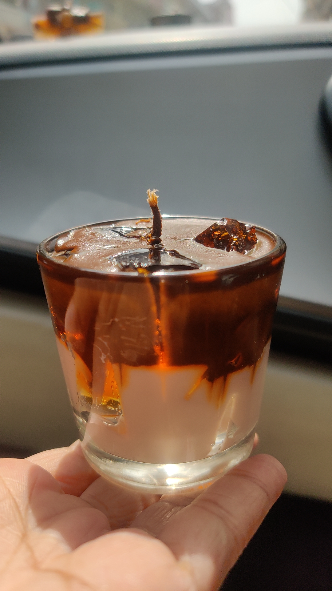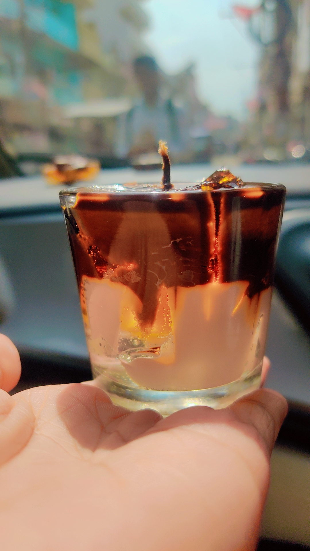 Experience the cozy charm of our Coffee Latte scented candle, infused with the rich aroma of espresso and creamy froth. Topped with a gel wax ice effect, it looks just like a refreshing iced latte in a cup.