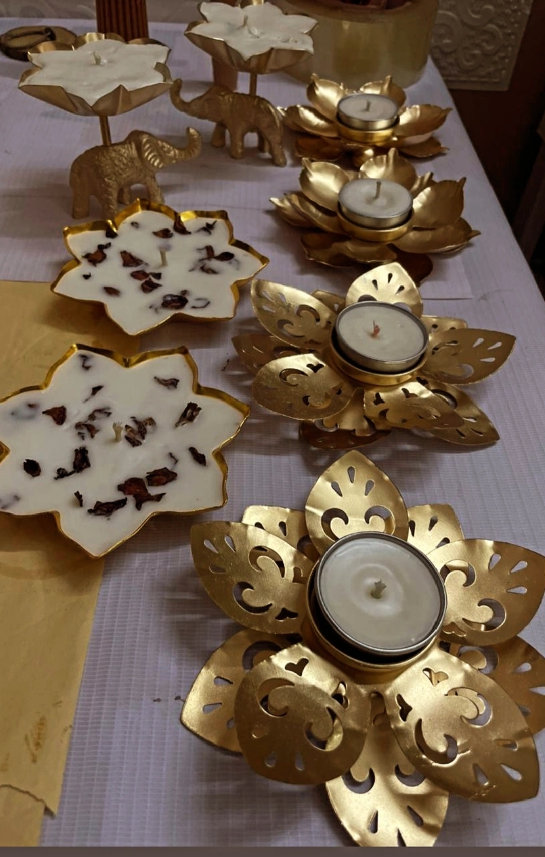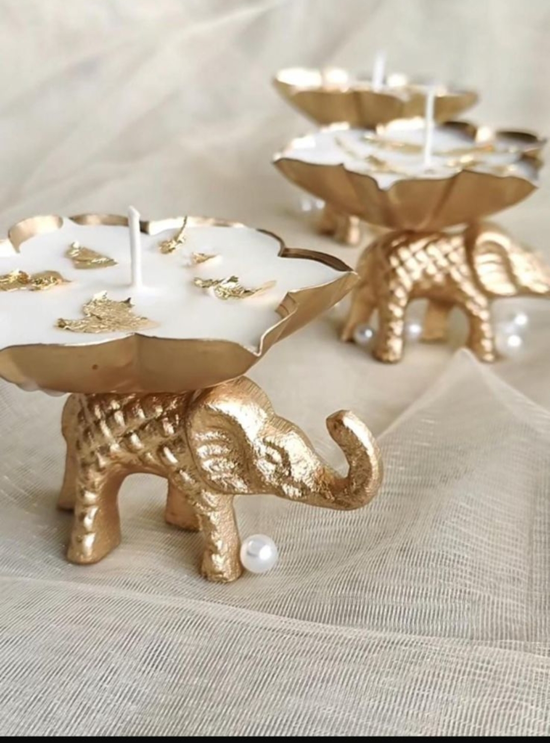 Elephant urli candle made with pure soya wax and fragrance and designed by golden foil