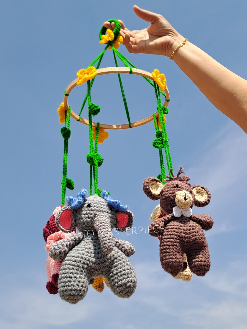 Introduce your little one to the world of imagination and wonder with this cute cot cobile featuring crochet toys. The handcrafted toys can be customized to your liking, bringing a personal touch to your baby’s nursery. Your baby will be mesmerized by the gentle movements and playful characters, creating a sense of joy and curiosity.